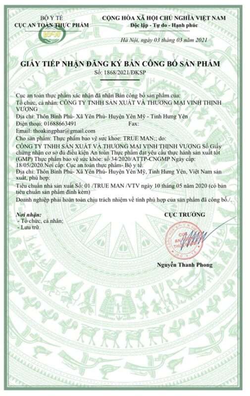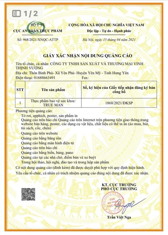 Số giấy xác nhận nội dung quảng cáo số: 968/2021/XNQC-ATTP