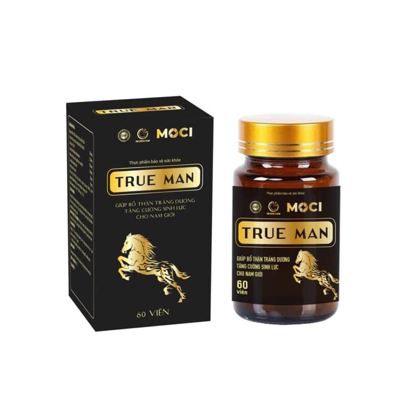 True Man là thực phẩm bảo vệ sức khỏe, thuộc nhóm hỗ trợ sinh lý nam, được phân phối bởi Công ty TNHH Mochi Mart. Sản phẩm được bào chế dưới dạng viên, dùng trực tiếp bằng đường uống, hỗ trợ bổ thận tráng dương tăng cường sinh lực ….tiểu đêm, tiểu són , nhiều không tự chủ…